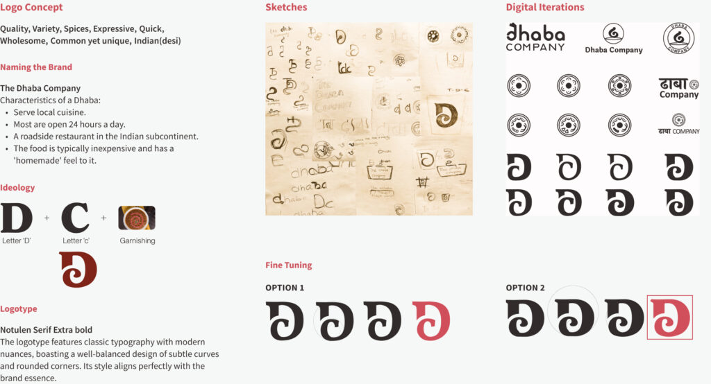 At Dhaba Company, we believe that our customers deserve to know that every dish they eat is prepared with utmost care. We want to make the concept of "Eat In" a common practice. By sourcing delicacies from all over the country, our brand aims to give our customers a sense of being valued and prioritized. The project aims to develop a brand identity and explore different packaging options for it.
