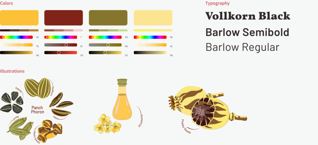 Color: The Dhaba Company, as a brand, aims to convey an image of trustworthiness, approachability, and youthfulness. The richness of Indian cuisine lies in its extensive use of spices, which vary from region to region. Drawing inspiration from this, I have created a color palette for the brand.