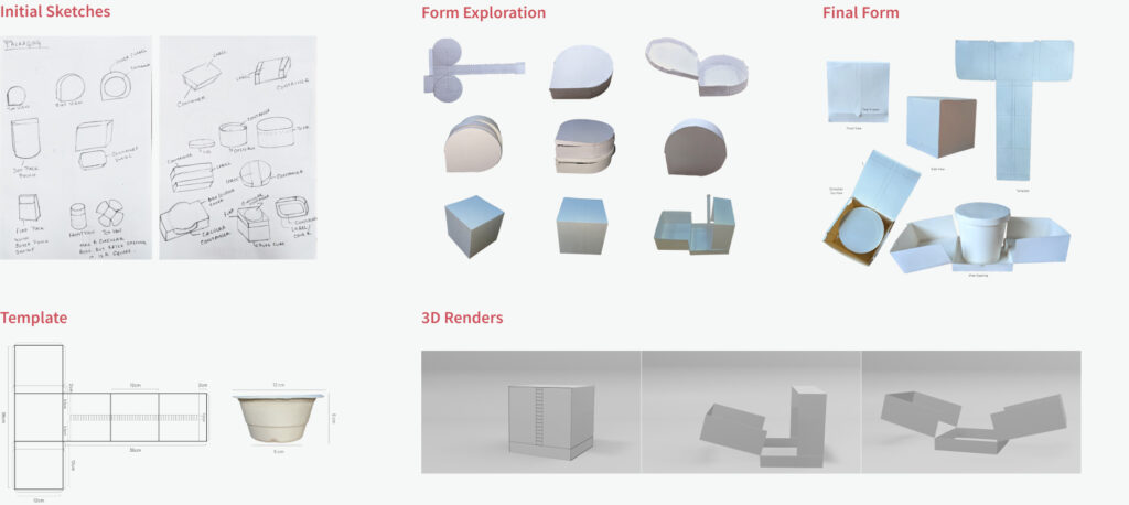 I explored diverse shapes and structures, considering how each form contributes to the overall functionality of our product packaging while enhancing the consumer experience.