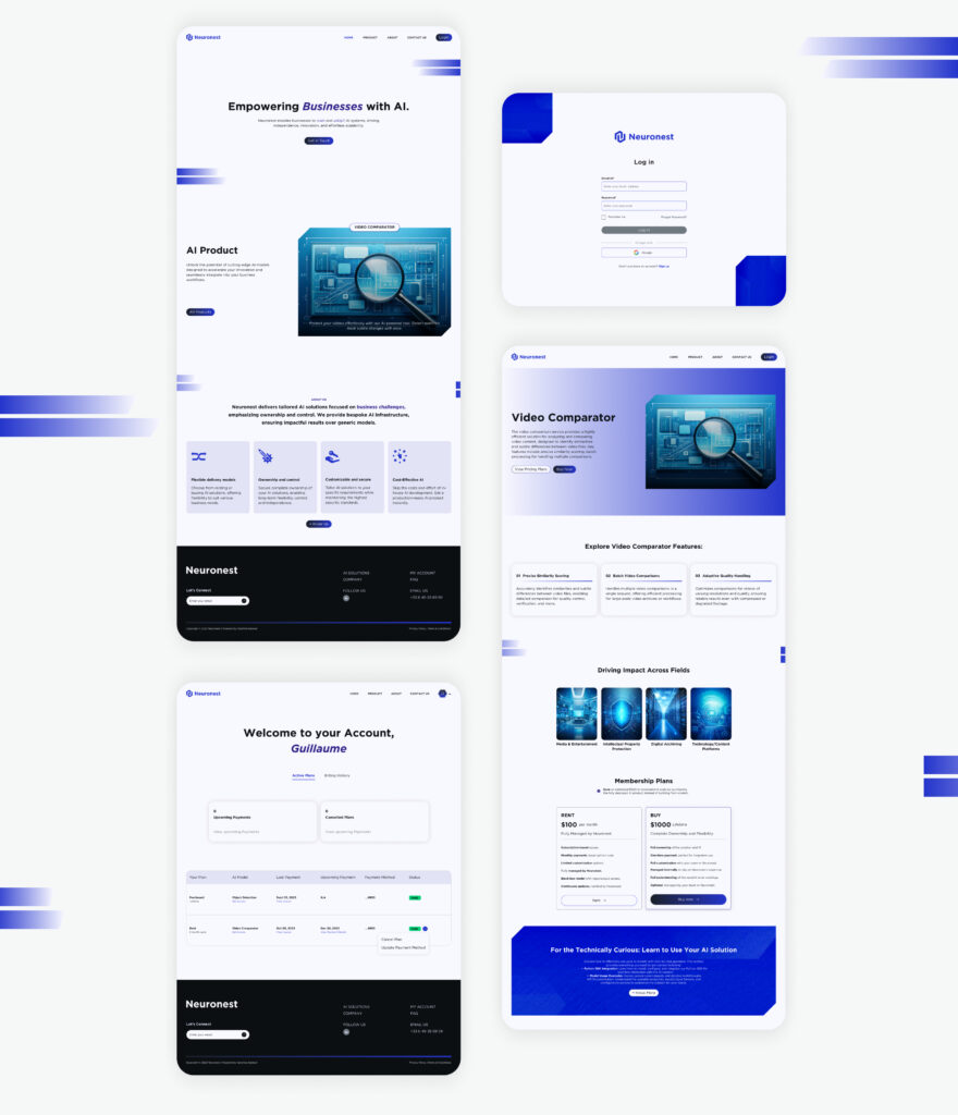 The interface brings Neuronest’s core promise to life — empowering users to deploy, own, and control AI solutions effortlessly. Designed to minimize friction and instill confidence, the visual highlights various touchpoints across the user journey, from onboarding and authentication to dashboard navigation and feature engagement.